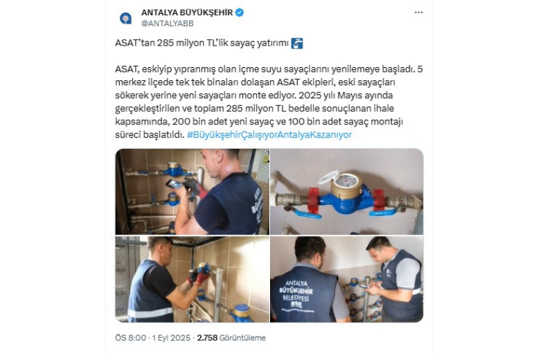 Projeyle ilgili olarak daha önce bilgi veren ASAT Sayaç ve Saha İşleri Müdürü Emre Akdemir, yürütülen çalışmalara ilişkin yaptığı değerlendirmede, “Antalya’nın 5 merkez ilçesinde başlattığımız çalışmalarla 10 yıllık ömrünü doldurmuş sayaçların değişimine başladık. Bu süreç, ASAT tarihinde bu ölçekte gerçekleştirilen ilk sayaç değişim operasyonudur” demişti. Akdemir, 2026 yılı itibarıyla sayaç değişim sürecinin 19 ilçeye yayılmasını hedeflediklerini belirtmişti.