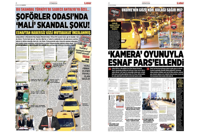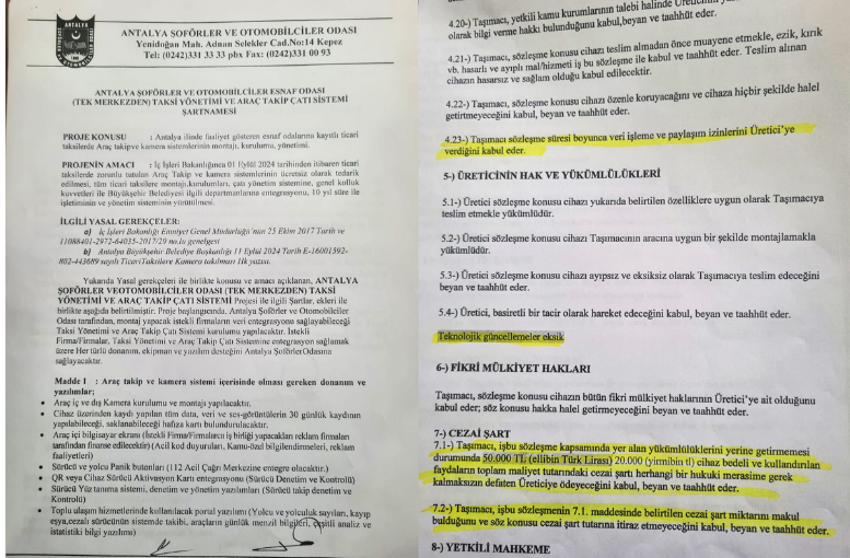 Antalya Şoförler ve Otomobilciler Odası’nın, UBER BV ile UBER Turkey Yazılım ve Teknoloji Hizmetleri Ltd. arasında imzalanan Mobil Taksi Çağırma Uygulaması ve Tek Merkezden Taksi Yönetimi ve Araç Takip Çatı Sistemi protokolü, taksici esnafını ağır yükümlülüklerle karşı karşıya bıraktı. Oda Başkanı Mehmet Ali Alkan yönetiminde “Türkiye’de bir ilk” olarak hayata geçirilen sistemin, bugüne kadar hazırlanan en ağır şartname olduğu ileri sürülürken, uygulamanın fiilen zorunlu hale getirildiği iddia edildi. Sözleşmede taksicilerin “tacir” olarak tanımlanması, günde en az 10 saat UBER uygulaması açık tutma zorunluluğu ile kamera–takip sistemlerine ilişkin tüm risk ve sorumluluğun taksiciye yüklenmesi, 10 Ocak’ta yapılacak seçim öncesi esnafın tepkisini oda yönetimine yöneltti.