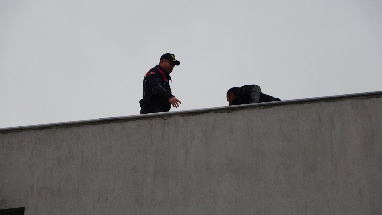ihtimaline karşı şişme yatak açarken, jandarma ekipleri çatıya çıkarak şahsı