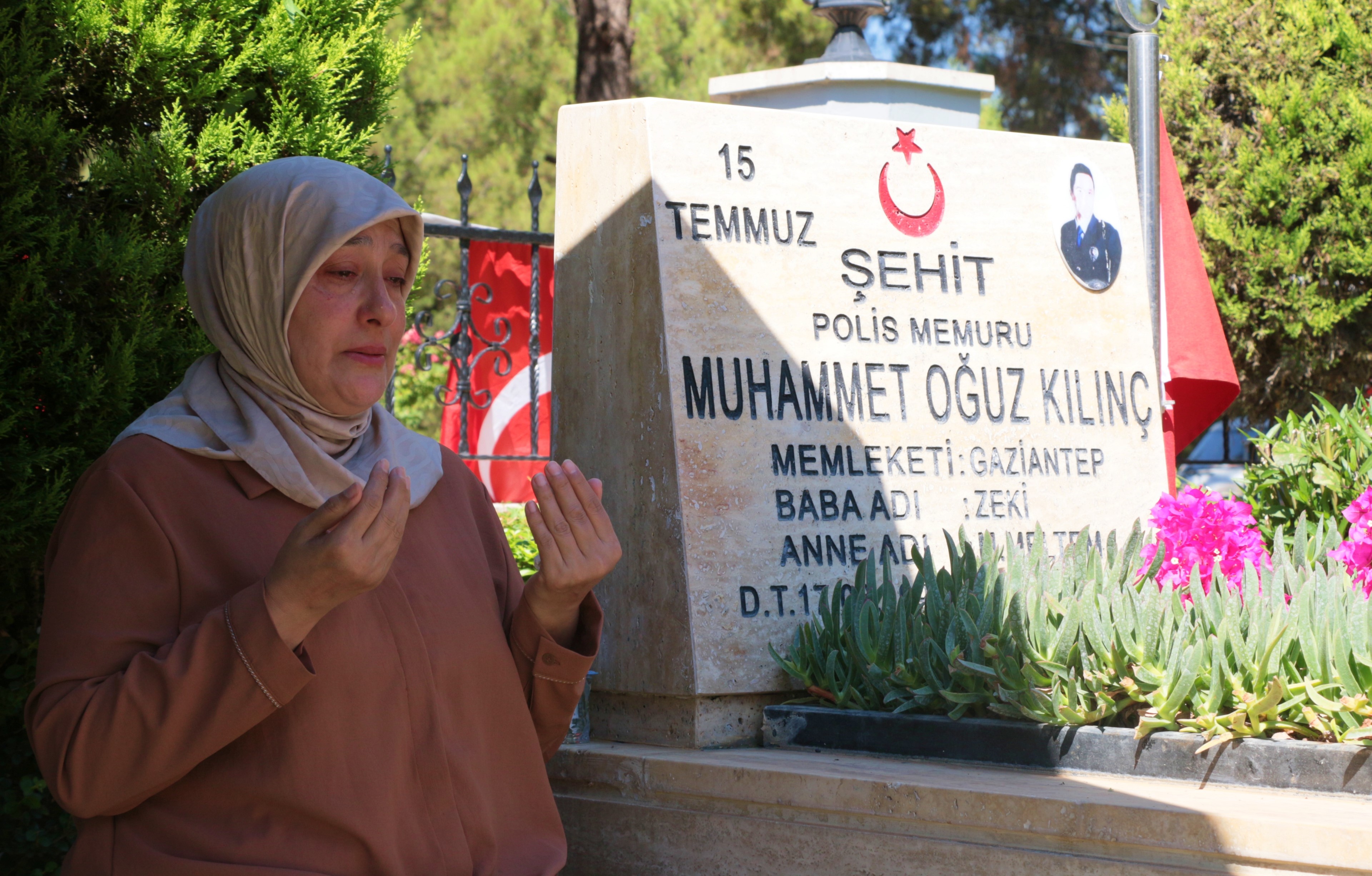 Kılınç başta olmak üzere şehit mezarlarını tek tek ziyaret ederek karanfil bıraktı.