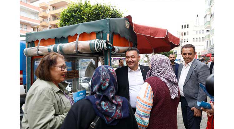 Alanya Belediye Başkanı ve Cumhur İttifakı Alanya Belediye Başkan Adayı Adem Murat Yücel, 25 Metreli Yolda esnafları ziyaret etti. 10 yıllık süreçte Başkan Yücel’in proje ve hizmetlerinden duydukları memnuniyeti dile getiren esnaflar, yerel seçimlerde Cumhur İttifakı’na tam destek vereceklerini dile getirdiler.
