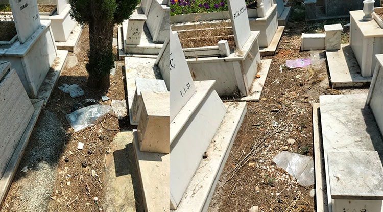 Plastik atıklardan tutun inşaat atıklarına kadar birçok çöpün mezarlığın çeşitli noktalarına savrulduğunu görüntüleyen vatandaşlar duruma oldukça sert bir şekilde tepki gösterdi.