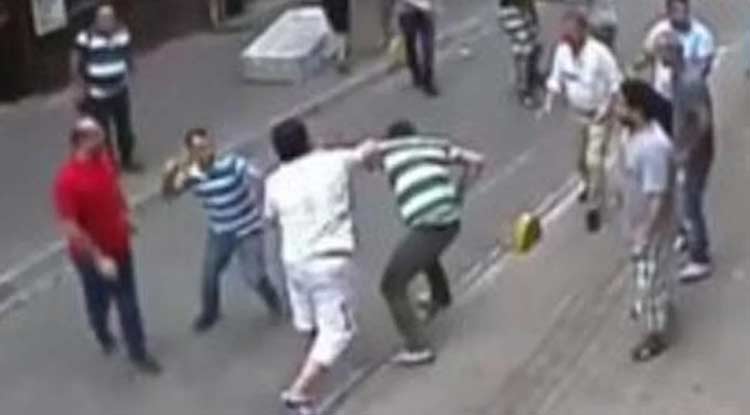 Kavga görüntüleri anbean çevredeki vatandaşlar tarafından kaydedildi. Görüntülerde çok sayıda işletmecinin vatandaşa sopalarla saldırdı görüldü.