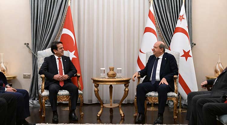 Antalya Ticaret Borsası (ATB) Yönetim Kurulu Başkanı Ali Çandır, beraberindeki Meclis Başkanı Erdoğan Ekinci ve Yönetim Kurulu Üyeleri Halil Bülbül, Cüneyt Doğan, Ragıp Gök ile birlikte Kuzey Kıbrıs Türk Cumhuriyeti Cumhurbaşkanı Ersin Tatar’ı ziyaret etti.