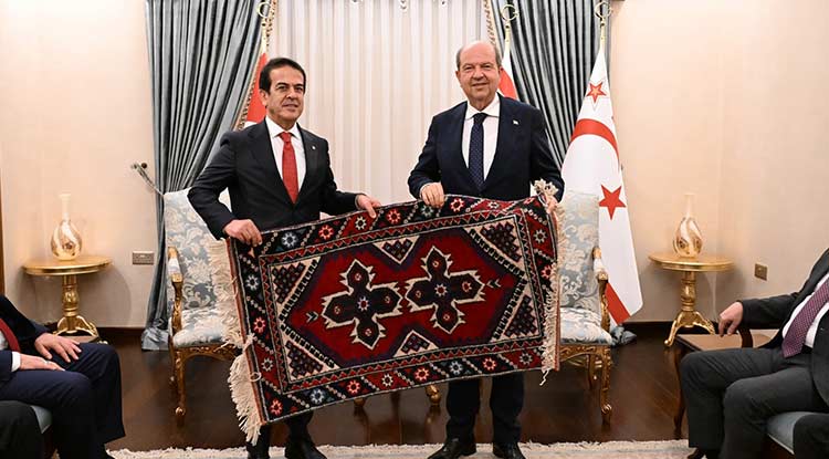 KKTC Cumhurbaşkanı Ersin Tatar, ATB heyetine ziyaretleri için teşekkür etti. Kıbrıs Barış Harekatı'nın 50’inci yılını kutladıklarını hatırlatan Tatar, Türkiye ile ayrılmaz bağlarla bağlı olduklarını ifade etti. Tüm ambargo ve baskılara rağmen KKTC’nin her geçen gün daha da ileri gittiğini söyleyen Tatar, bu konuda Türkiye ve Türk iş insanlarının rolüne dikkat çekti. Başkan Çandır, Cumhurbaşkanı Ersin Tatar’a ziyaretin anısına coğrafi işaretli Döşemealtı halısı hediye etti.
