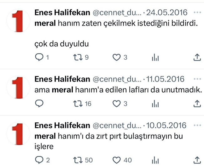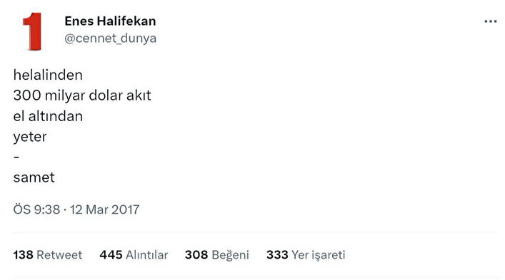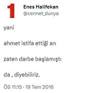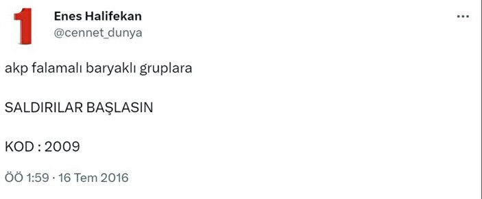 Söz konusu hesapta; 15 Temmuz darbe girişimi, 13 Mart Ankara
