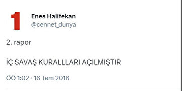15 Temmuz darbe girişiminde bozguna uğrayan FETÖ'cülerin Twitter'da 'Enes Halifekan' isminde 'cennet_dunya' rumuzlu bir hesaptan şifreli mesajlar paylaştığı tespit edildi.
