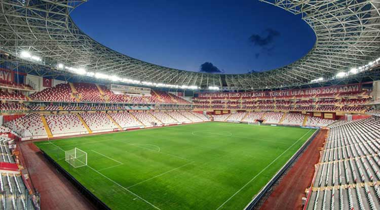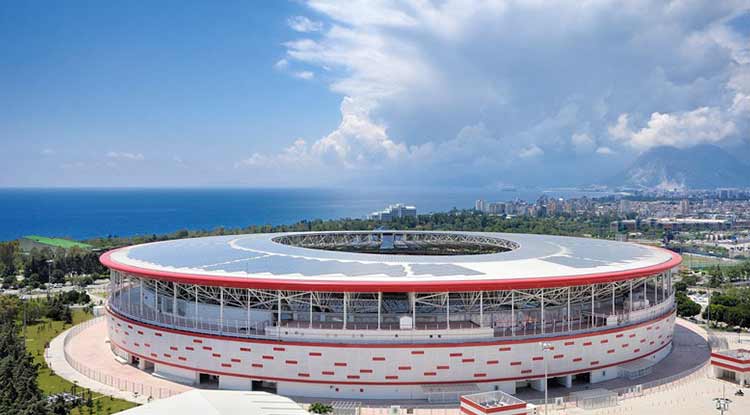 Antalya’daki 32 bin seyirci kapasitesine sahip olan Antalyaspor Stadyumu da seçenekler arasında yer alıyor. Stadın 90 bin 251 metrekare(m2) büyüklüğündeki bir alanda toplam inşaat alanı 87 bin 331 m2’dir. Toplam çatı alanı 22 bin 118 m2 olan stadyumun çatısında 1400 kw elektrik enerjisi üreten fotovoltaik güneş enerjisi panelleri bulunuyor.
